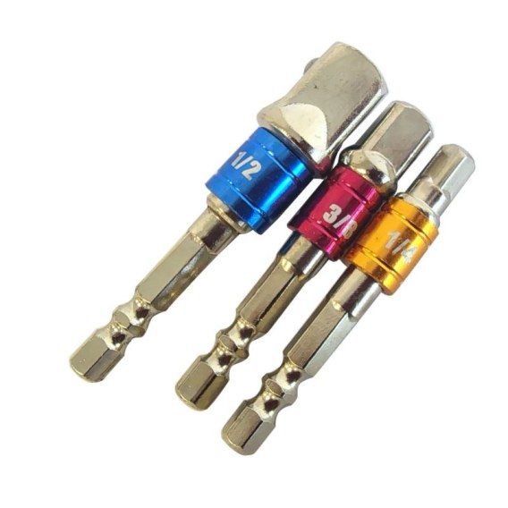 Adaptery do wkrętarki / zakrętarki to praktyczny zestaw przejściówek umożliwiających szybkie i łatwe połączenie narzędzi z końcówką HEX z tradycyjnymi nasadkami w rozmiarach 1/4", 3/8" i 1/2". To idealne rozwiązanie dla każdego majsterkowicza i profesjonalisty, który chce zwiększyć funkcjonalność swojej wkrętarki lub zakrętarki udarowej.