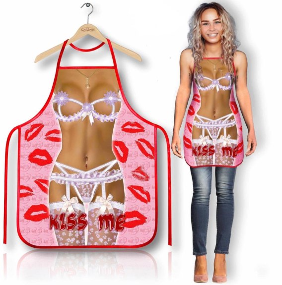 Słodki, zalotny i diabelnie kuszący — fartuch Kiss Me to idealny przepis na podgrzanie atmosfery w kuchni! Realistyczny nadruk koronkowej bielizny, delikatne kwiatowe akcenty oraz czerwone odciski ust tworzą efekt, obok którego nikt nie przejdzie obojętnie.