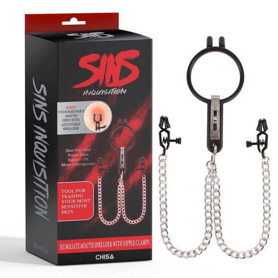 Humiliate Mouth Spreader with Nipple Clamps