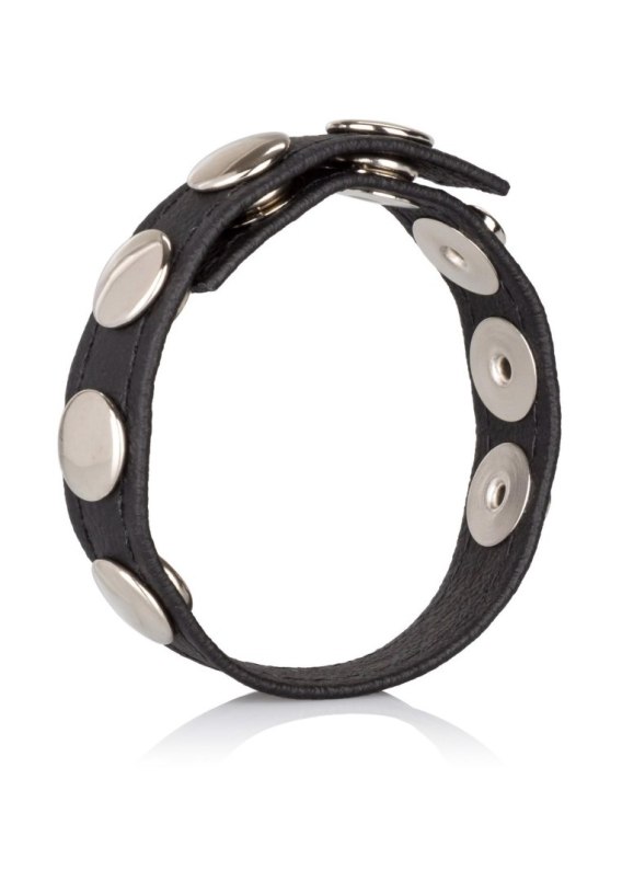The Adonis Leather Collection - Ares offers a luxurious leather bondage look, one that promises both restraint and sensation. Beautifully crafted, this 5 snap, adjustable leather ring strap features anickle-free metal snaps, and a style that's designed to lead your lover into an exciting, sensual experience.