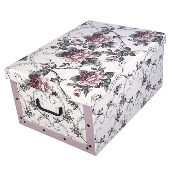 Pudełko kartonowe MAXI "Barok Antyk" doskonale sprawdzi się do przechowywania ubrań, dokumentów, zabawek i akcesoriów. Świetne do garderoby, biura, pokoju dziecięcego oraz jako eleganckie opakowanie prezentowe.