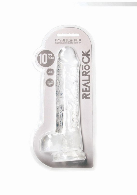 Ten model REALROCK CRYSTAL CLEAR został wyposażony w realistyczne jądra, zwiększając realizm doznań. Wszystkie dilda są wyposażone w wytrzymałą przyssawkę, dzięki czemu można przykleić je praktycznie do każdej gładkiej powierzchni. Wszystkie dilda REALROCK CRYSTAL CLEAR są pozbawione ftalanów i lateksu, bezpieczne dla skóry i nie posiadają porów. Dzięki temu łatwo je czyścić i są wytrzymalsze.