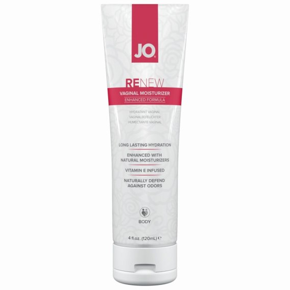 JO RENEW VAGINAL MOISTURIZER to intensywnie nawilżający krem przeznaczony specjalnie dla kobiet. Mieszanka substancji nawilżających, w tym bisabololu, aloesu i owocu ogórka, zapewnia delikatną formułę do codziennego stosowania, zaprojektowaną w celu złagodzenia suchości pochwy. Bogaty, jedwabisty krem zapewnia łatwą aplikację, bez ściekania, ułatwiając stosowanie w dzień i w nocy.