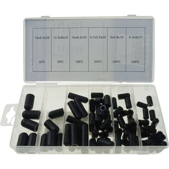 Zestaw 80 sztuk zatyczek gumowych do zaślepiania króćców i sztywnych przewodów podciśnienia.